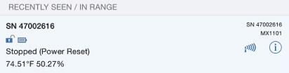 。記錄器應出現在步驟5中顯示的最近出現/范圍列表中。如果記錄器未出現,請確保記錄器在設備的范圍內。