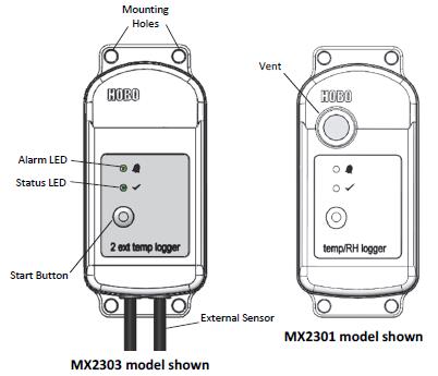 這是連接到記錄儀底部的外部探頭,用于測量溫度或溫度/相對濕度。MX2302記錄儀有一個外部傳感器可以測量溫度和相對濕度,而MX2304記錄儀只有一個傳感器可以測量溫度。MX2303記錄器(如圖所示)有兩個外部溫度傳感器;左邊的傳感器是通道1和第一個溫度在HOBOmbile中顯示,右側傳感器是通道2,在HOBOmobile中是第二個。