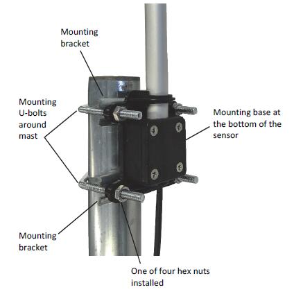 設備和之前的S-WSET-B 風速風向傳感器一樣,可以安裝在立柱上,或安培在橫臂M-CAA或M-CAB 上,安裝以下圖