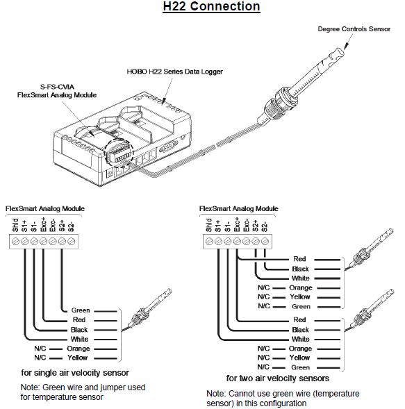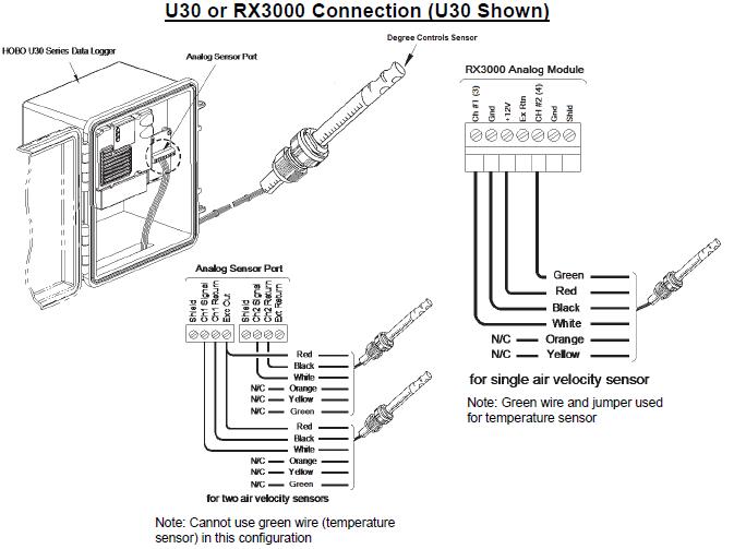 新型空氣流速傳感器熱線式風(fēng)速傳感器連接HOBO記錄儀的接線圖