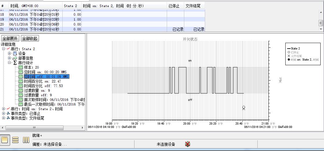 請注意,如果 UX90-004 電機開/關記錄器與連接到其外部輸入的 CSV-A8 一起使用,則數據將以相同的方式呈現。